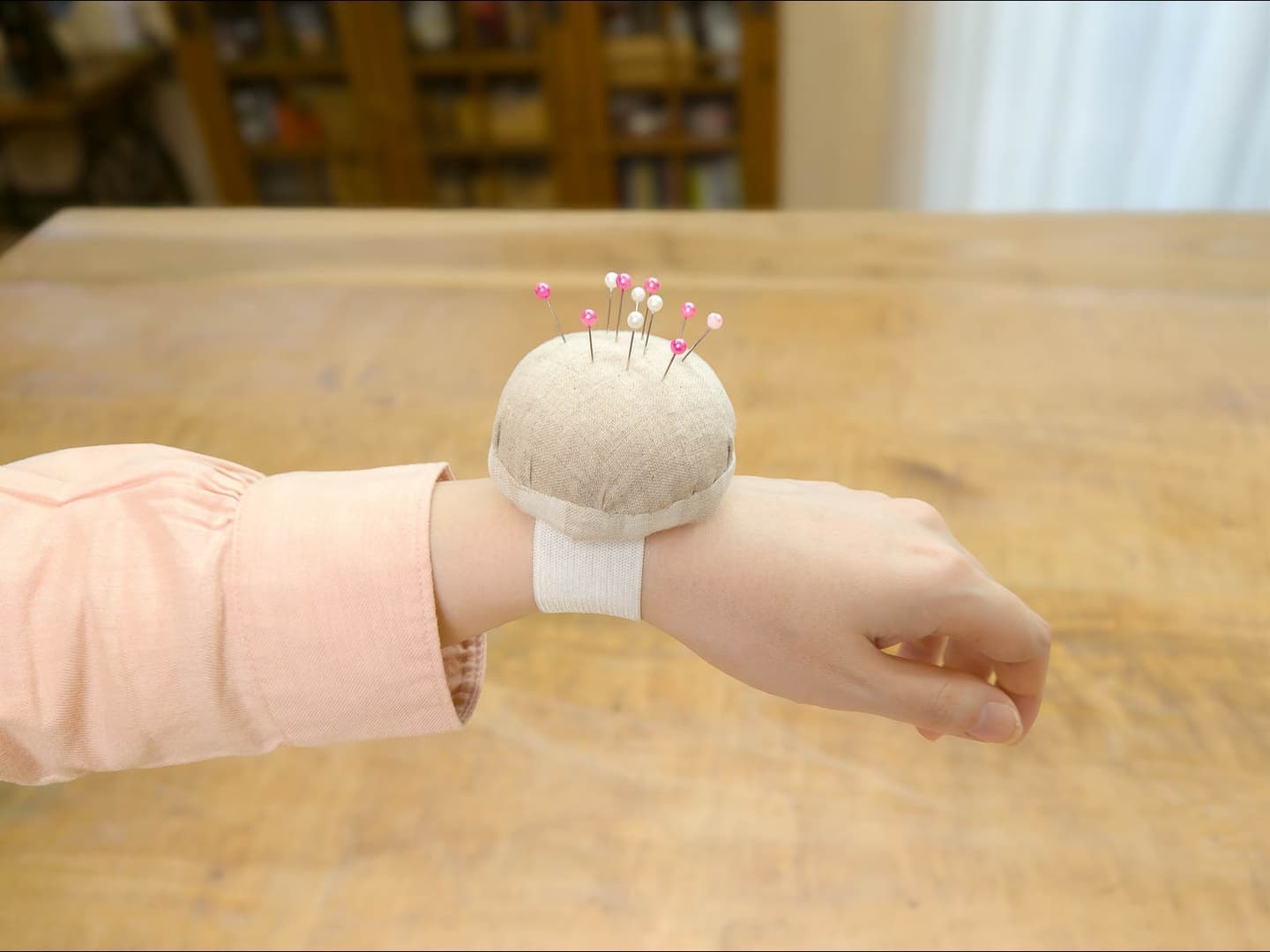 ゴム付きのものだと手首に付けられるので、ボディのピン打ちに便利です。