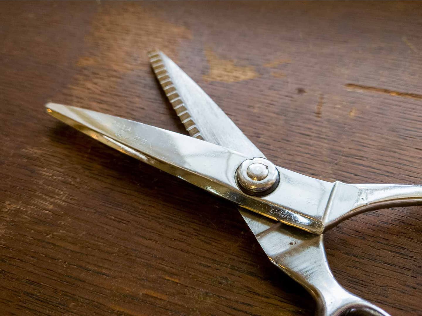 布の端をピンキングばさみで切るとほつれなくなります。ギザギザに秘密あり。